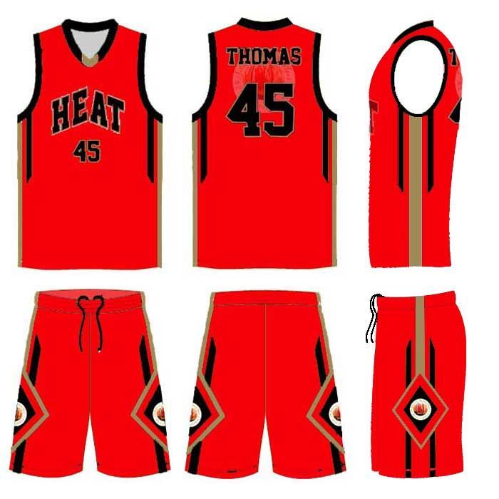 This fully sublimated custom made uniform is made for the Heat Basketball of San Jose Californian to the specification of Coach Thomas. Satisfaction is guaranteed!
