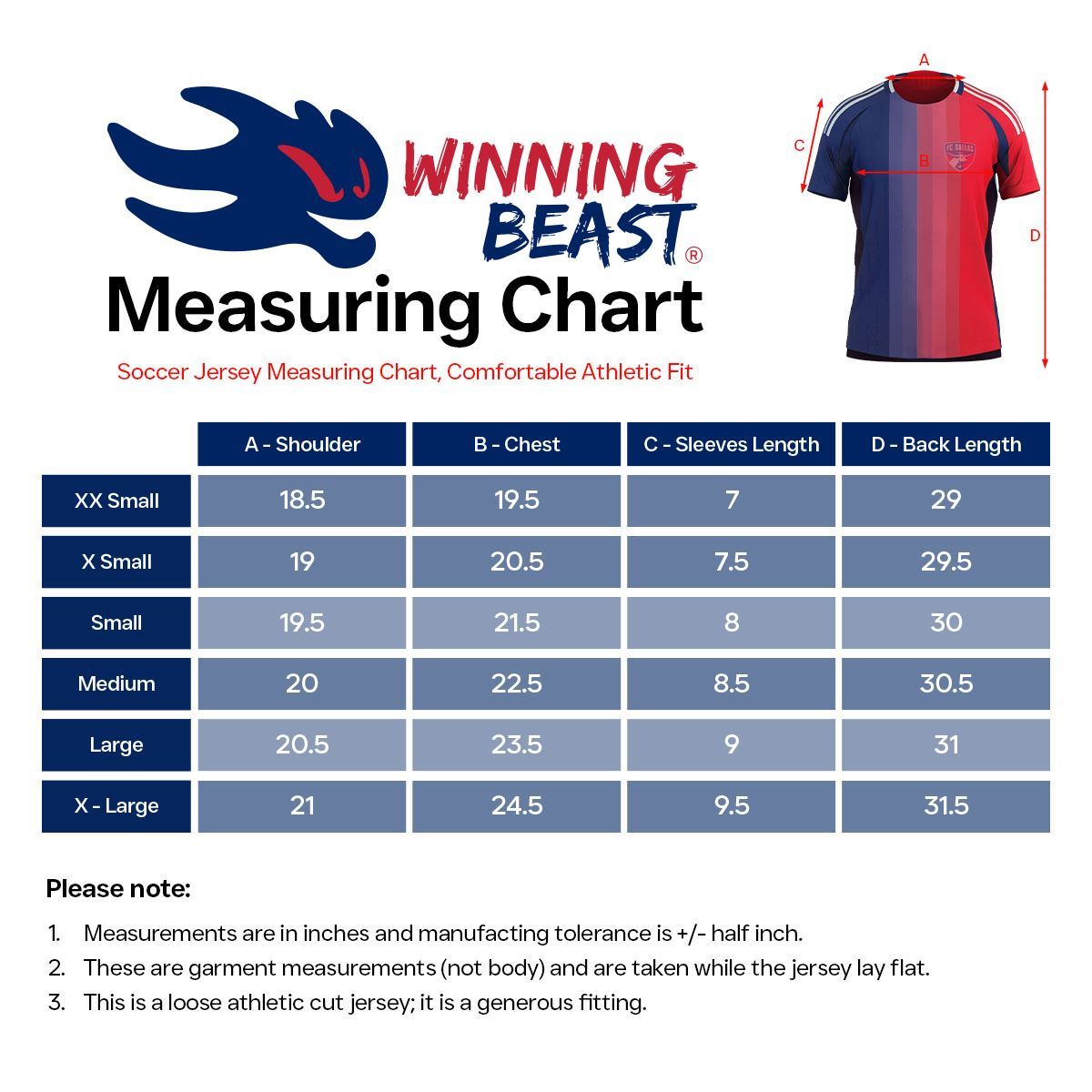Winning Beast brings you the 2025-26 Dallas home jersey for men and women, made for fans who want comfort and style. Crafted with Interlock Play Fresh fabric, it keeps you cool and dry whether you’re playing on the field or cheering from the stands. The sublimated design is built into the fabric, so the away colors stay bright without peeling, fading, or cracking. Designed with a relaxed sport cut and American standard sizing so you can get the perfect size and move freely. Made from lightweight 100% polyester microfiber, it’s breathable, easy to wear with its pull-on style, and comfortable. This jersey is machine washable, quick-drying, and low-maintenance, so it’s always ready for the next match. A true fanwear version from Winning Beast, this sport jersey is perfect for showing your Dallas spirit anywhere you go.