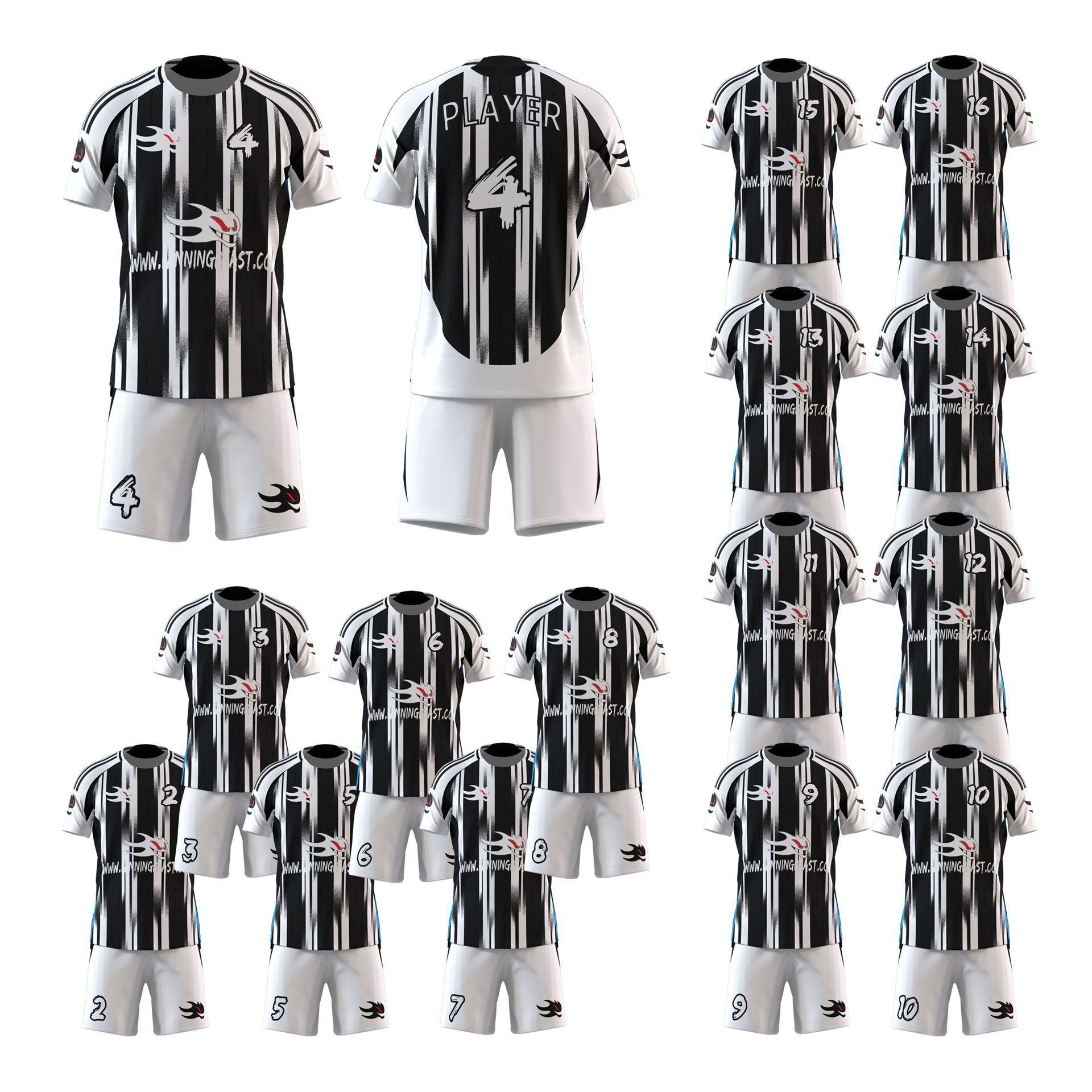 This special price applies to purchases of 15 kits (jersey, shorts) that will be custom made to the colors of your choice and personalized with Player numbers and Team/Club logo on the jersey. Please use the CONTACT US link below to let us know your color choices and we provide pre-production drawings via email for your approval before we begin production. Satisfaction is guaranteed!