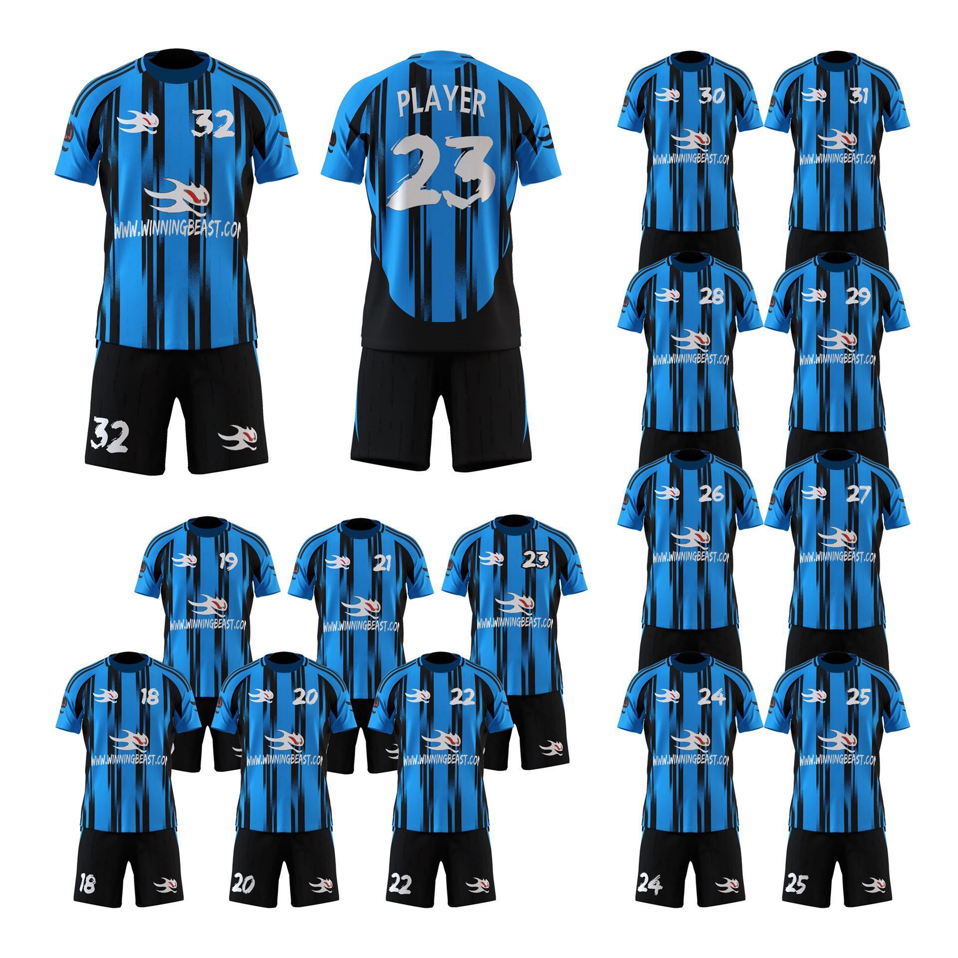 Lot of 15 Unisex Soccer Apparel (Jersey and Shorts) Custom Made for You in Any Ten Sizes with Numbers and Logo. Style 127.