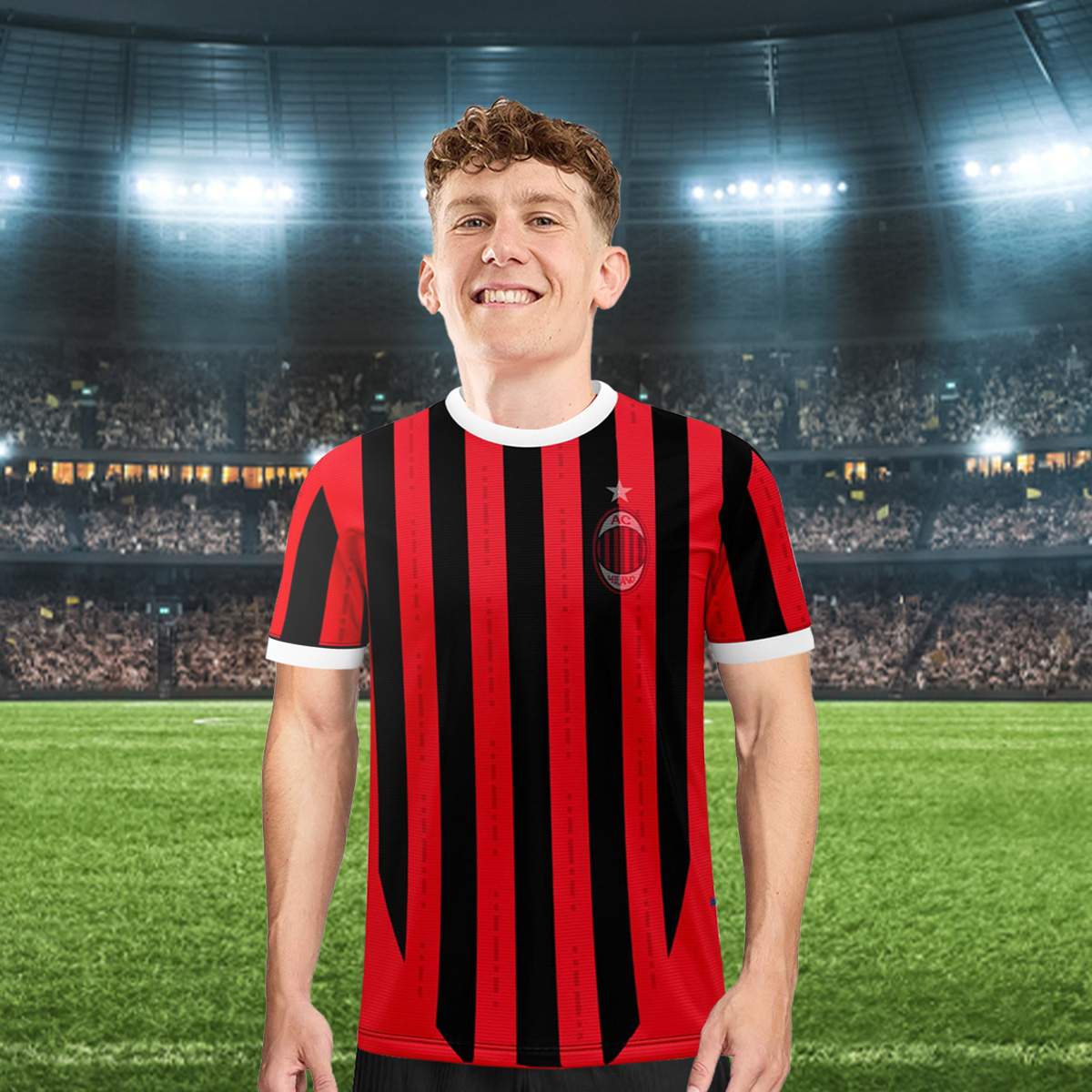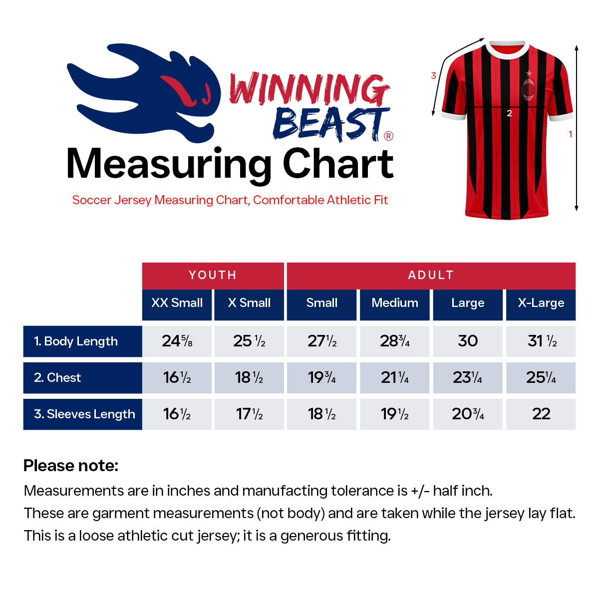 The Winning Beast Milano 2024/25 Jersey is the best all-around choices for the 'Rosso-Neri' fan to cheer the soccer team in a stylish and comfortable jersey. Featuring a sublimated design in the team's colors, the jersey is made with Interlock Play Fresh Technology fabric for moisture and heat transfer properties. Please look at the size chart before you select your size, the jersey is cut to American standard, ensuring a comfortable fit. The team crest, design, and colors are permanently sublimated into the fabric, preventing future peeling or fading. Whether you're watching the game at the stadium or from home, this jersey is the perfect way to show your team spirit. Style 665. Satisfaction guaranteed!