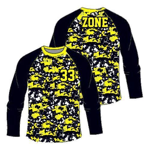 Our popular CAMOUFLAGE Shooting Shirt - features fully dye sublimated printing. The shirt fabric colors, featured design and all chosen personalization are simultaneously dye sublimated onto the moisture wicking fabric, which means no cracking, peeling or tearing in your design or player numbers. The minimum order quantity is 10 sets; the listed price includes—at no additional cost—all desired personalization / decoration along with free delivery to Continental US addresses. Our fabric is made with polyester micro fiber and you have the choice of fabric configuration and weight. We carry full range of sizes for adults and children.